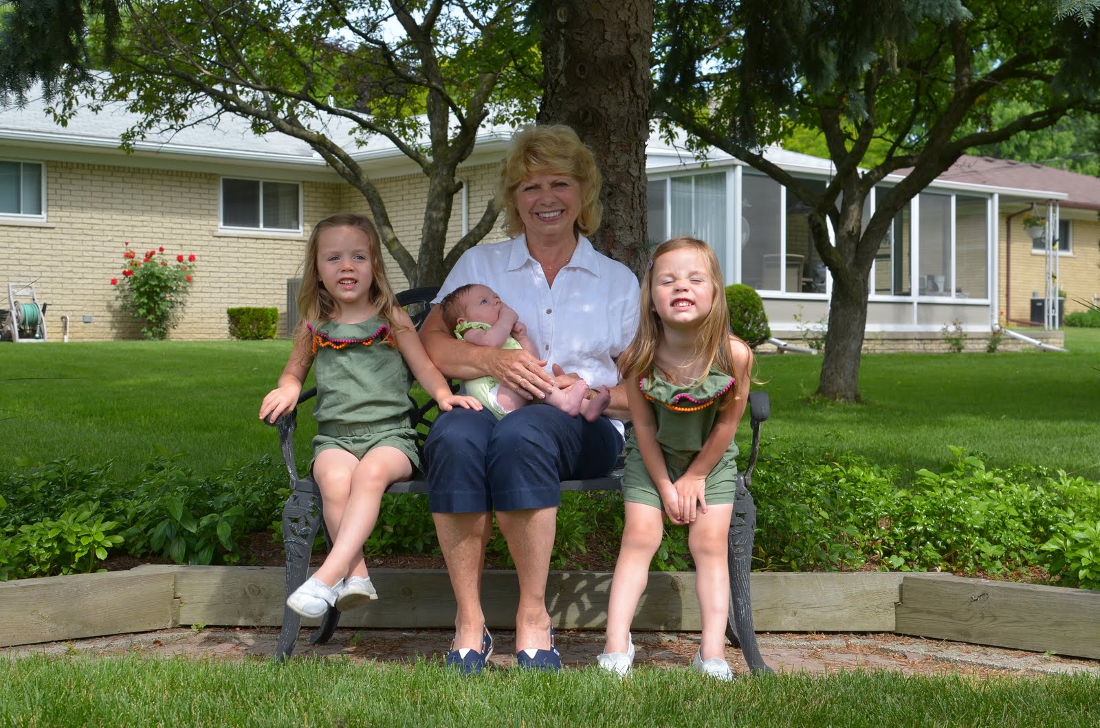 Finally! These pictures were from well over a month ago. I keep meaning to get them on here, but clearly, I have been procrastinating. We went up to Michigan for Chris's cousin's high school graduation party. We also visited his grandparents. It was a way overdue visit. The girls haven't seen them since Christmas before last. M and L thoroughly enjoyed our time there. They swam at Jim and Maeda's house- first pool trip of the summer, had graduation cake, hung out with grandma and grandpa and great g and g, played in the yard, and got lots of attention. We took tons of pictures before leaving, and you can tell when the girls start to near their end...we get some super cheesy "cheeses!"