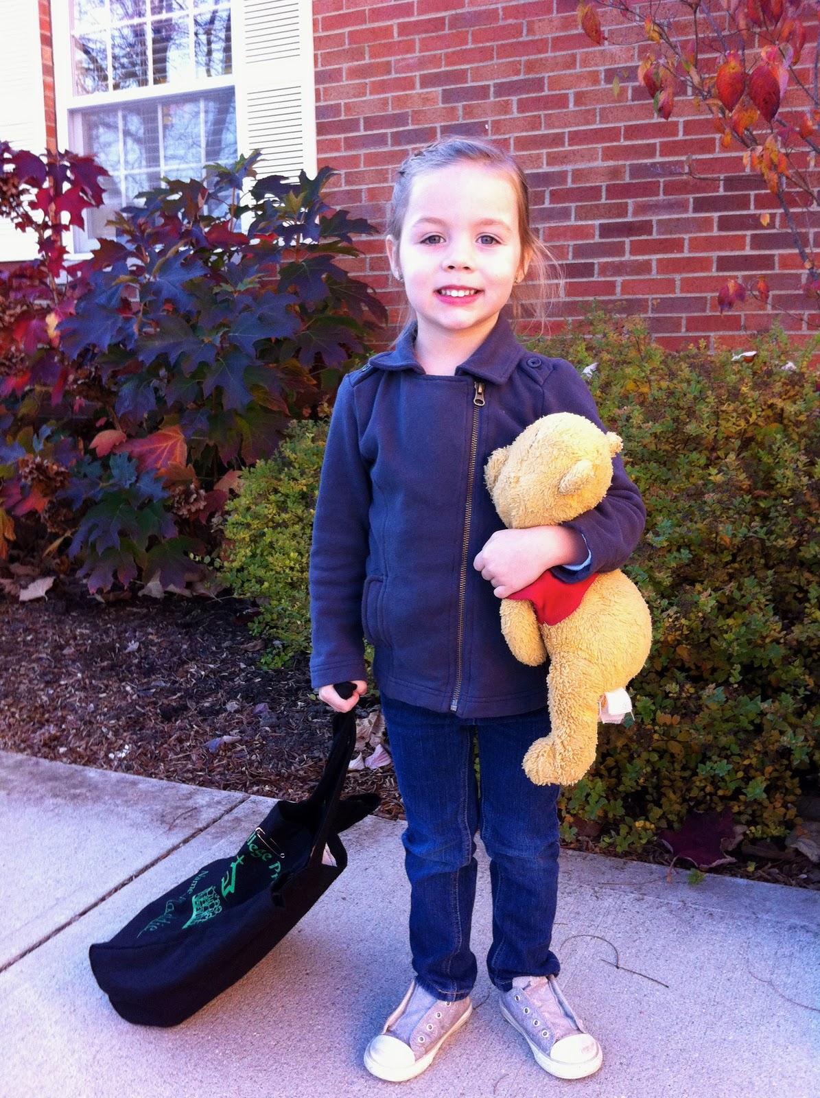 Maddie's special day was Tuesday. She was so excited after having to wait an entire week since Lena had her day. It was brutal for her- not getting to go first. But she made it, and she was ecstatic that morning. She took fruit snacks ("You know, Mom. Like the ones Lena got to take."). She had an awesome day of being the leader, standing in the middle in muscles class, and wearing her star sticker. Her poster told her classmates that she loves candy, princesses, riding her scooter, and her family (including Maxer). She took Pooh for show and tell- of course. It is so cute how she still totes that guy around. I am waiting for his head to pop off one day. She always carries him how she is in the picture.